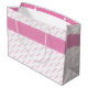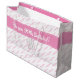 Skicka ett meddelande till mönster med din egen ord. rosa och vitt mönster skapas från upp till 3 linjer (mindre än 30 tecken vardera) med text som upprepas med diagonala rader. Det finns en banderoll med rosa runt mitten med mallar för att lägga till ditt händelsemeddelande på framsidan. Det finns också en faux present-märkre till kort, ett personligt meddelande på framsidan. Denna unika presentväska är lämplig för tillfällen som t.ex. milstolpar, födelsedagar, årsdagar, bröllop, studenten och så vidare.