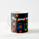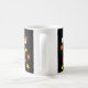 Om ditt namn är James, gör anspråk på ditt ägande av detta ljusa och färgstarka mugg med ditt namn i handmålat pappert kollage brev, på svart bakgrund, sprinklat med gult, orange och röda stjärnor. Ord, "Detta mugg-tillhör till..." är skrivet i vitt precis under fälgen.