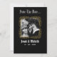 Meddela din stora dag med djärv gotisk stil med detta "Till döden skiljer oss åt"-kort (Till Death Save the Date). Designat med en dramatisk svart bakgrund, intrikat guld Art Deco-ram och slående sminkat skelettpar, är detta kort perfekt för par som planerar ett Halloween-bröllop, gotisk romans eller alternativ firande. Personifiera med era namn och bröllopsdatum för en kusligt elegant souvenir som sätter scenen för er speciella dag. Kombinera med matchande inbjudningar och förlovningsfest-papper för en komplett gotisk brölloppsserie.