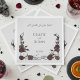 Dessa eleganta Til Death Do Us Part gotiska näsdukar med dödskalle och ros design har en mjuk, ljusgrå (nästan vit) bakgrund med ”’Til Death Do Us Part” högst upp, brudens och brudgummens namn centrerade och datum för evenemanget nedanför för en ren och balanserad layout.