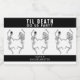 Svarta och vita "til death do us party"-etiketter för mini-alkoholflaskor för möhippa/möhippa. Skelettbrud och -brudgum-design som är perfekt för ett Halloween-temat bröllopsevenemang. Anpassa texten och färgerna för ditt evenemang.
