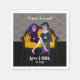 Dekorativ Tills döden skiljer oss åt-design med ett par Socker Skallar med modernt lila hår som sitter på en vintage-salong gul soffa och damaskliknande tapet. Anpassningsbar typografi så att du kan göra den unik. Perfekt gåva för bröllopsfest, par-fest, förlovningsfirande, Halloween-fest och Día de los Muertos-firande.