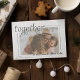 Ett enkelt Julhälsningar fotokort som skickas ut till familj och vänner som önskar dem säsongen hälsning. Med en klassisk vit bakgrund, ett valfritt bild, elegantens kalligrafteckensnitt som lyder "tillsammans är vår favoritvara ställe att vara". Namn och år.