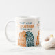 Glad samvaro-mugg med tecknade stadsbyggnader i retro stil.