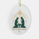 Fira tro och familj med den här eleganten Nativitetsilhuetterornament. Har en strålande stjärna ovanför Heligan Familj, personlig med din familj namn och år. Baksidan ger en varm julvälsignelse - en tidlös keepé för träd eller för att ge med kärlek.