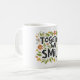 "Tillsammans vi sjömil" i en vibrerande regnbågsgradient. Varje ord övergår jämnt från ett färg till ett annat och skapar ett glatt och optimistiskt utseende.Den bild du har laddat upp visar ett mugg med frasen "TOGETHER WE SMILE" omgiven av färgstarka blommor och löv. Det kan vara en underbar presentidé eller en symbol för positivitet och lagarbete.