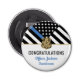 Ett underbart sätt att säga grattisar till den nya pensionären eller student för deras pension eller studenten från polisakademin. Den här utformningen har en polisstyrka med svarta och vita ränder, och även en tunn blå flagga rand. Anpassa till namn om den avgående eller utexaminerade tillsatta lagar-officeren, sheriffen, kaptenen eller chefen. Fira milstolpen i stil!