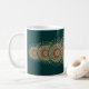 Kaffemugg som dekoreras med "den tillväxt" designen. Designen omges med engrönt bakgrund och klippas med en mörk - grön gräns.