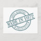 Tillverkad 1972 Födelseår Rund gummistämpel Logo Vykort