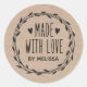 En personlig "tillverkad med kärlek"-dekal på en färgad av kraftkraft omgiven av en krans och ett hjärta. Gör det till din egen genom att lägga till din egen namn. En söt som avslutar beröring för alla handgjorda presenter. Designad av Blackberry Boulevard.