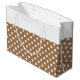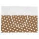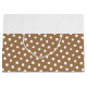 Den här moderna konstruktionen har en ljusmocha brun bakgrund fylld med vit polka dots i vind. Ett vitt, vitt, övre, kant rand kompletterar sammansättningen.