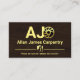 Trätäcket av elegant förstärks av en linje i guld handyman verktyg gräns nära kortets bas. Längst upp finns ditt monogram namn initialer med en elsåg i guld som du kan använda med. Bara under detta ljuger företaget namn och kontaktuppgifterna. På andra sidan, i ett liknande trätäcke, ligger logotypen guld högst upp. Detta följs av ditt prestigefyllda namn, kontaktinformationen och ett sloganalternativ för att publicera ditt företag. Alla bokstäver är i Faux guld. En underbar design för träarbets- och mattteman.
