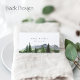 Lägg till en personlig till mottagningskortet i bord med det här vikta platskortet från Timberline-samlingen av Redwood & Vine Design Co. Framsidan har en serene grönt berg- och evergreen water color-illustration, perfekt för rustik- eller vinterbröllop. Baksidan kan anpassas efter parets datum namn och bröllop, vilket ger en söt och sammanhängande avslutande detalj till varje gästs inställning i ställe. Tryckt i förpackningar om 25; utrymme för handskrift av varje gästs namn och bordsnummer.