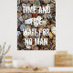 Old proverb set upon a background of broken watches. The quote means no one can stop the march of time no matter how rich or how powerful, time is a great equalizer and it's good to be reminded there's no time like the present to set some some goals and go about achieving them.