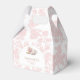 Sweet and elegant tea party baby shower design with pink floral toile and watercolor tea set details. Great for packaging small treats and keeping your shower favors looking polished and coordinated.