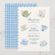 This elegant baby shower invitation features a charming tea party theme with beautifully illustrated teapots and teacups in soft floral patterns. The delicate blue typography combined with pastel tones creates a timeless and graceful design, perfect for celebrating a mom-to-be.