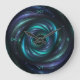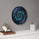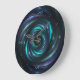 Den beställnings- väggen tar tid på med digital konst som presenterar en Archimedean spiral för fantasi på aqua och lilor. Timmeteckning är romerska tal, och de kan ändras till arabiskatal eller text.