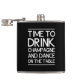 Time som dricker champagne och dans på bord fickplunta