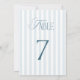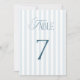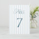 Timeless Blue Stripes Wedding Table Number 7 Sign Inbjudningar