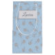This beautifully designed gift bag showcases a delicate botanical pattern featuring vintage-inspired floral linework on a soft blue background. The refined, minimalist detailing creates a timeless and sophisticated look, perfect for both everyday use and thoughtful gifting. Blending classic charm with modern elegance, this piece can be personalized to make it uniquely yours.