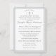 Design features the traditional format for a Catholic wedding invitation displayed in a silver-colored font against a white background. Top displays the monogram of bride and groom on either side of a cross. A small heading is featured above as an arch. Design is framed by an elegant silver and white colored border.
