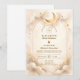 A refined celestial design featuring delicate crescent moons, scattered constellation stars, and a warm parchment-toned background. A thin gold border frames the layout, while elegant typography creates a timeless, sophisticated composition. The subtle vintage texture and balanced spacing give this piece a romantic, storybook feel without overwhelming the details. Perfect for couples who love classic elegance with a soft cosmic touch.