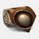 Timeless love, surreal elegance in steampunk style. The design features an ornate steampunk-style frame, captivating with its delicate carvings and gold accents. The frame is richly decorated with intricate patterns and shimmering metallic details reminiscent of Victorian mechanics and artisanal precision. The frame's surface appears slightly aged, underscoring its authentic steampunk charm. A red heart adorned with gold details is visible at the bottom of the design. The heart is flanked by delicate blue wings, lending it a touch of lightness and romance.