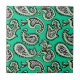 Bold paisley designs in black, green, lime, and white swirl across a vibrant green background. The intricate patterns create a lively, decorative effect.