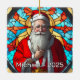 An absolutely stunning Christmas ornament perfect for a cherished spot on your tree! This design captures a warm, detailed portrait of Santa Claus holding a star and holly, beautifully rendered in the vibrant, illuminated style of traditional stained glass. The rich colors and classic imagery make this a timeless piece, ideal for commemorating a special year, gifting, or adding an elegant, classic holiday touch to any Christmas decor collection.