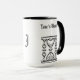 Monogrammed kaffemugg för timglas. "Är du på ta tid på" på båda sidor med ett gammalmodigt timglas. Du kan tillfoga din Monogram till sidan (se monogramen "J" och ändra den till din egna Monogram eller dina anställda eller medarbetare Monogram eller NAMN. Välj från över 300 stilsortsstilar. Välj stil av muggen, färgkombinationer. Travel mug som är tillgängliga i vit och, stålsätter. Frostad anpassadekaffe koppar.