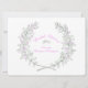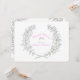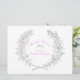 Två kvistar timjan blad och blommor bildar en örtkrans cirkel i grå, rosa och grön blomsterbröllopsdusch inbjudan. Redigera dessa inbjudningar med ditt eget namn och evenemangstext. Skisserad konst och design av Sarah Trett.
