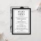 Den här tidsinställda och sofistikerade bröllopsinbjudan innehåller en klassisk svart-vit design med en dekorativ delare. Elegantens utformning utplånar modern charm samtidigt som man bibehåller en aning tradition, perfekt för par som uppskattar raffinerad estetik. Den här utformningen, som är tryckt på en högkvalitativ kartong, anger tonen för en snyggt och ett minnesvärt firande.