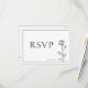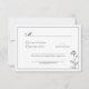 Den här OSA kort från den "tidslösa Bloom"-samlingen för stationära bröllop** är enkel och elegant med sin fyrkantiga design. På framsidan visas "OSA" i ord högst upp i ett teckensnitt för elegant, följt av OSAN i ett mindre, förfinat skript. Den enkelradiga teckningen i ro placeras på ett lämpligt sätt under texten, vilket ger en något sofistikerad bild och binder designen till resten av samlingen. Baksidan av texten i OSAN presenteras på ett tydligt och organiserat sätt. Gästerna uppmanas att ange om de kommer att "acceptera" eller "avslå" inbjudan, följt av ett avsnitt för att ange antalet gäster som ska närvara. Det finns också utrymme för att ange eventuella livsmedelsallergier eller kostrestriktioner. Det finns en extra-rad för ytterligare alternativ, t.ex. en begäran från sång eller andra speciella anteckningar som det par önskemål ska inkludera. Denna rad är anpassade och kan tas bort om det inte behövs, vilket garanterar flexibilitet för parets specifika preferenser. Kortets utformning harmoniserar konstnärliga detaljer med praktiskt inslag, skapar det som ett tillägg till samlingen "Timless Bloom", som återspeglar både elegans och funktionalitet.