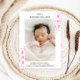 Lägg fram din nya ankomst med elegans. Det här platta födelsekortet blandar klassiskt typsnitt med mjuka toner och skapar en design som känns både sofistikerad och hjärtslitande - perfekt för att passa baby:s första meddelande.