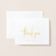 Tack vare det klassiska kortet och elegant bröllop har du en enkel layout med "tack" i ett modernt skript och ditt namn och bröllop-datum nedan. All text på framsidan finns i guld. Den rena och minimalistiska utformningen gör att du i bröllop tackar dig för underbaren för ett traditionellt, formellt bröllop.