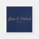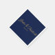Den här bröllop-cocktail-kapkin i personlig är vacker, enkel minimalistisk och elegant. Utformningen har den nya lyweds-namn, bröllop-datum i guld-skripttypografi. Allt anpassade, inklusive eleganten, sofistikerad och tidlös marin blå bakgrund.