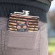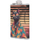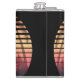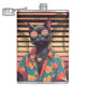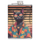 Timless Tropical Cat Attitude Hip-kolv: En svart katt, med överdimensionerade solglasögon och en hawaiisk skjorta, som slår en coola med ett tropiskt solnedfall bakom sig.