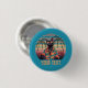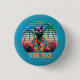 Timless Tropical Cat Attitude 1 Inch Round Button: En svart katt med överdimensionerade solglasögon och en hawaiisk skjorta strejkor om en coola mot ett tropiskt solnedfall.