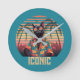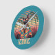 Timless Tropical Cat Round Clock: En svart katt, med överdimensionerade solglasögon och en hawaiisk skjorta, som slår en coola med en tropisk solnedgång bakom sig.