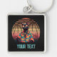 Tangentkedja för den tidslösa tropiska kattatän: En svart katt med överdimensionerade solglasögon och en hawaiisk skjorta strejkor en coola mot ett tropiskt solnedfall.