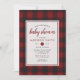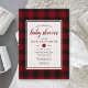 Bjud in vänner och familj till en mysig fest med denna rustika timmerhuggar-inspirerade baby shower-inbjudan. Med en djärv röd och svart karamellrandig bakgrund som påminner om klassisk flanell är denna design perfekt för en skogsinspirerad eller rustik utomhusfest. Idealisk för föräldrar som älskar naturen, camping eller stugdekor, ger denna inbjudan en varm och inbjudande känsla till evenemanget. Sätt tonen för en minnesvärd baby shower med denna charmiga och tidlösa timmerhuggar-randiga design.
