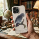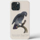 Denna vintage vetenskapliga illustration, med titeln "Seconde variété du Perroquet Cendré", är ett mästerverk av den framstående franska konstnären Jacques Barraband. Illustrationen, som återfinns i François Levaillants banbrytande 1800-talsverk Histoire Naturelle des Perroquets, fångar den sofistikerade elegansen hos Timnehgråpapegojan (Psittacus timneh). Barrabands minutiösa detaljrikedom framgår tydligt i de fint etsade kolgrå fjädrarna och den karakteristiska vinröda stjärten, som skiljer denna art från dess större kusin, kongogråpapegojan. Papegojan sitter graciöst på en strukturerad gren mot en minimalistisk krämfärgad bakgrund, och illustrationen framhäver fågelns intelligenta blick och böjda,