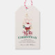 Capture the holiday magic with this charming, whimsical and a Tini Bit Merry Gift Tags! Featuring a retro Santa balancing martini glasses or champagne coupes, in festive red and green, this design adds a playful nostalgic vibe to your family Christmas cards. Your holiday “Merry Christmas” message sits at the bottom, your family name is written in a script font below this whimsical Santa illustration. Available as a digital download - explore the collection for matching items!