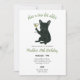 This customizable birthday invite features a watercolor style portrait of a black french bulldog holding a dirty martini with the caption "she's a tini bit older".