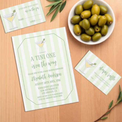 A tini one is on the way! Martini and olive themed baby shower