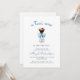 This trendy baby shower invitation features a watercolor illustration of an espresso martini adorned with a blue bow. Above, the words "a tini one" appear in blue casual handwriting script. Personalize the text with the name of the mom-to-be in blue script and the details in charcoal gray sans serif font. The reverse side provides space for diaper raffle, books for baby, and registry details, along with a convenient QR code guests can scan to visit the registry. Ideal for a boy's baby shower.