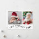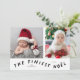 Minimalt och modernt födelseattest för födelsemeddelande i helgdag med 2 foton av ditt nyfödda på framsidan med en roligt typograftext som säger "den nyaste nyeln". Du kan också lägga till ytterligare ett bild och ett meddelande på baksidan. Bakgrunden är vit.