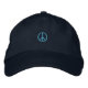 En liten broderad fredssymbol på en hatt. Du kan ändra broderietråden färg så att de matchar din favorithatt. Enkel grafisk design. Fred!