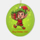 Bring some North Pole magic to your tree with this adorable Tiny Christmas Elf Ornament for 2025! This vibrant illustration features a cheerful little elf, dressed in festive red and green, holding a bright holiday gift. Set against a sparkling, colorful background, this ornament is perfect for families with kids or anyone who loves the whimsical side of the season. This non-photo piece is a delightful collectible. Easily personalize the ornament with a name or the year to create a treasured holiday memory!