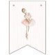 A charming Tiny Dancer bunting banner featuring adorable ballerinas, ballet shoes, and soft blush pink striped backgrounds with a “Happy Birthday” message. Perfect for decorating walls and creating a sweet, ballet-inspired atmosphere for your little dancer’s birthday celebration.